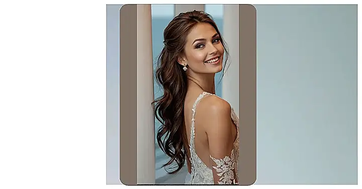 The woman in this picture has hair that could make a mermaid jealous! It’s long, flowing, and looks totally effortless – even though we know it probably took hours to style. But that’s the beauty of it, right? It looks like she just woke up looking gorgeous. Imagine rocking that look at a wedding – you’d be the envy of every other bridesmaid. It’s simple, chic, and totally perfect for a big day.