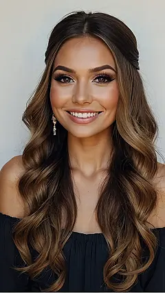 Hey there, future bridesmaid! So, you’re on the hunt for the perfect hairstyle to rock at your bestie’s wedding, and “down bridesmaid hairstyles” is your keyword? Well, get ready to ditch the updo stress! This gorgeous picture shows a hairstyle that’s all about effortless beauty. Think luscious, flowing locks, with just enough style to make you look like a total princess (without having to spend all day in a salon). It’s the kind of hair that screams, “I’m ready to party, but also ready to look amazing in every photo!” This style is perfect for a relaxed wedding, or if you want something comfortable yet chic – that way you can dance the night away without a hair out of place!