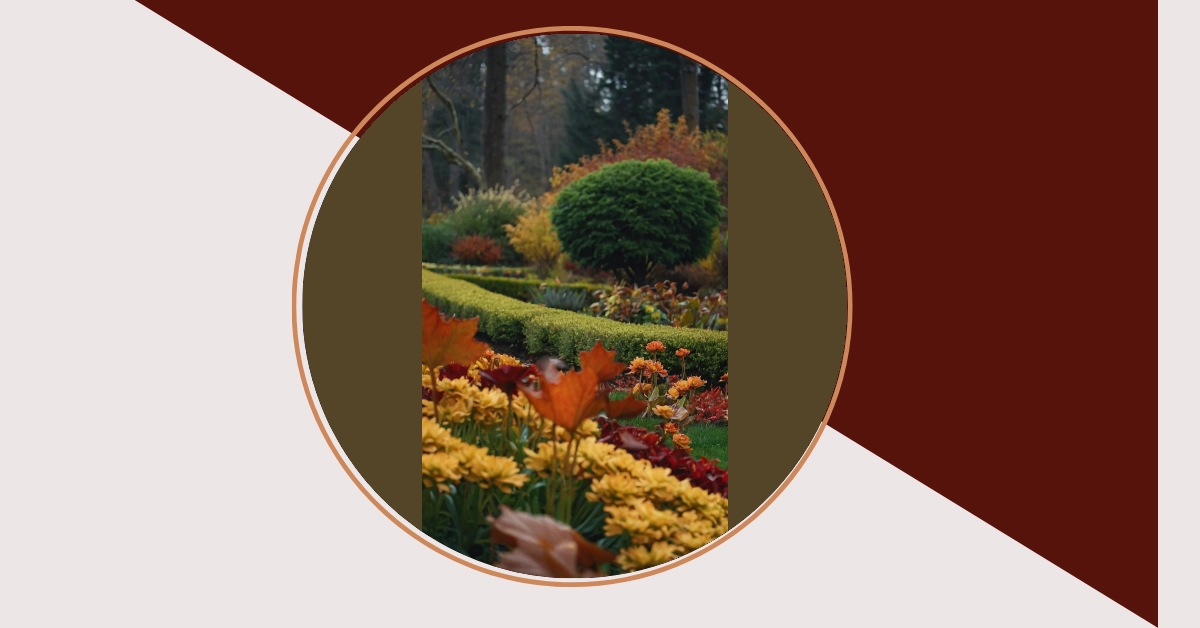 Looking around, you see more fall colors – like the yellow bushes and the green hedges. The garden is a kaleidoscope of vibrant hues, making you realize that even though summer is gone, there’s still so much beauty to be found in nature. It’s like nature is saying, “Hey, don’t be sad about summer being over, let’s enjoy these awesome autumn colors!”