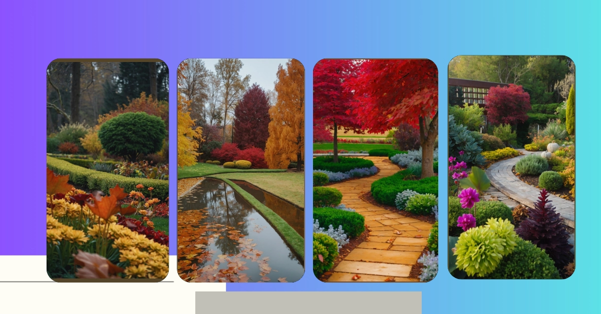 Looking around, you see more fall colors – like the yellow bushes and the green hedges. The garden is a kaleidoscope of vibrant hues, making you realize that even though summer is gone, there’s still so much beauty to be found in nature. It’s like nature is saying, “Hey, don’t be sad about summer being over, let’s enjoy these awesome autumn colors!”