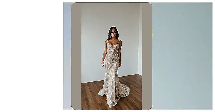 And just look at how it fits! That gorgeous mermaid style hugs all the right places and then flares out with a little train, making it perfect for floating down the aisle or, let’s be real, trying to tear up the dance floor (carefully, of course, you wouldn’t want to lose a bead!). Plus, that smile on the model’s face? Totally screams “I know I look amazing,” and honestly, with a dress this fabulous, who wouldn’t be grinning from ear to ear? It’s the kind of dress that makes you want to find a reason to get married just so you can wear something this epic!