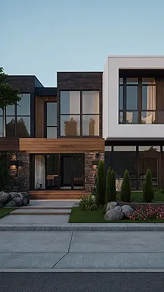 This house is absolutely stunning! With its sleek black and white exterior, it looks like something straight out of a magazine. The large windows let in tons of light, and the landscaping is just perfect. It’s easy to imagine yourself relaxing on the patio with a glass of lemonade, enjoying the sunshine and the beautiful view. I bet this house has a super fancy kitchen too, maybe even a secret room! I wonder if there’s a pool in the backyard…