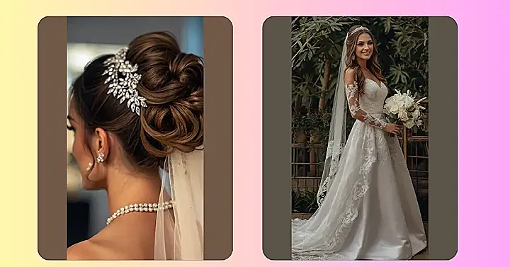 And don’t worry, my short-haired queens, because we’ve got styles for you too! You can still rock a breathtaking bridal look with a slick bob styled into an updo that showcases your facial features beautifully. Or go for a simple shine with textured waves that look effortlessly chic! Pair it with a tiara, and it feels like a nod to all the royal vibes we adore so much. A charming veil cascading down enhances the overall glam!