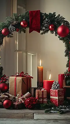 See how beautifully arranged everything is? Even the presents are perfectly placed! This shows that smart decorating is all about thinking creatively about placement and scale. You don’t need a giant tree or a mountain of decorations to have a wonderfully festive small apartment. A few carefully chosen pieces, like the elegant lantern and the cozy garland, make a big impact and totally transform the space. The image is the perfect inspiration for making your small space feel merry and bright this Christmas!