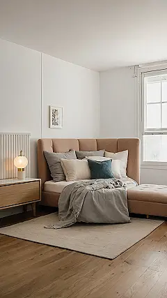 Even if you don’t have a big bedroom, you can still create a similar feel! Start by picking a color palette that makes you feel calm and happy. Then, add some soft textures like fluffy pillows and blankets. Don’t forget to personalize your space with your own unique touches – think photos, artwork, or even just a few colorful plants. With a little creativity, you can transform your room into a cozy sanctuary.