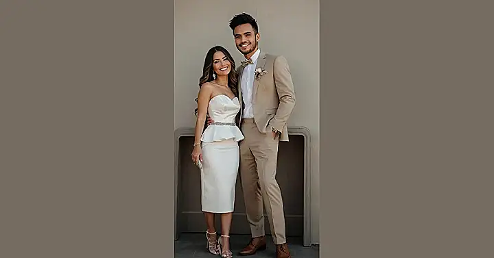 Planning a wedding can feel like a never-ending to-do list, right? But finding the perfect outfit doesn’t have to be a total drama. This bridal outfit is like the chill cousin of those floor-length gowns. It’s elegant enough to make your grandma cry happy tears, but short enough that you can actually bust a move on the dance floor.