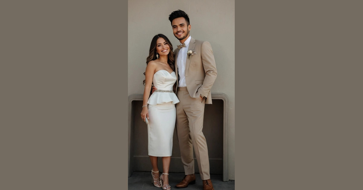 Looking at the groom, he’s killing it too! That tan suit is super classy, and the bow tie? Adorable! It’s like they raided a fancy safari and made it wedding-appropriate. The whole look is so coordinated, they probably spent hours picking out the perfect shade of beige. I bet they’re going to have some amazing pictures to show off for years!