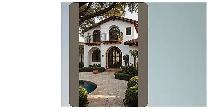 Forget your average suburban square box; this ‘small’ hacienda-style pad is serving up serious architectural swagger! Peeking at this picture, you can almost hear the soft strum of a guitar and smell something delicious cooking. With its fancy arched doorways that look like they’re straight out of a movie and those solid wooden beams, this place probably thinks it’s too cool for school. Plus, who needs a boring old porch when you’ve got a balcony like that, perfect for dramatically overseeing your domain (or just yelling at your friends to come inside for snacks)?