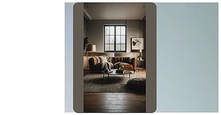 This living room screams “I’m sophisticated and chill, but also maybe a little bit dramatic.” The black curtains are like the mysterious cool kid in the back of the class who everyone wants to be friends with, and the white couch is the classic good-looking friend everyone wants to be. The whole thing feels like a movie scene where the protagonist takes off their shoes and chills out after a long day, but with a dash of fancy.
