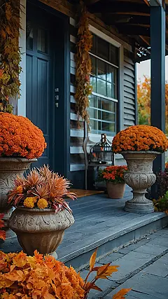 The potted mums are the perfect touch of fall, adding a burst of color and warmth to the scene. And those fancy pots? They look like they were made for a fancy garden party, but even if you just have a regular old porch, they’re sure to make you feel like you live in a fairytale!
