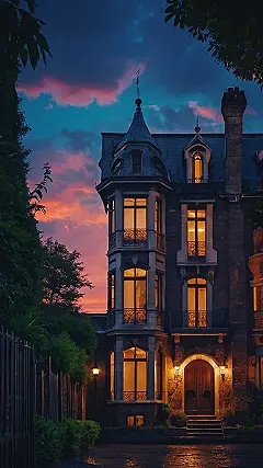This dreamy house looks like something straight out of a storybook, doesn’t it? Imagine setting this gorgeous sunset view as your phone’s wallpaper! All those glowing windows make it feel cozy and magical, perfect for when you want to escape into a world of fantasy between texting your friends and checking your homework. You can practically smell the warm cookies baking inside, don’t you think? This image is amazing, seriously! It’s totally unique, unlike anything you’ll find in a regular photo app, and would be the ultimate conversation starter with your friends.