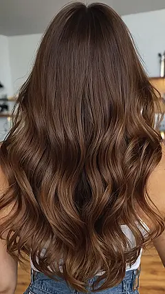The image shows a person with gorgeous, long brown hair that looks super soft and bouncy. It’s like they just stepped out of a salon and their hair is ready for a photoshoot. Imagine the possibilities! You could totally rock a braid like a princess, or maybe a messy bun for that effortless, “I woke up like this” look.