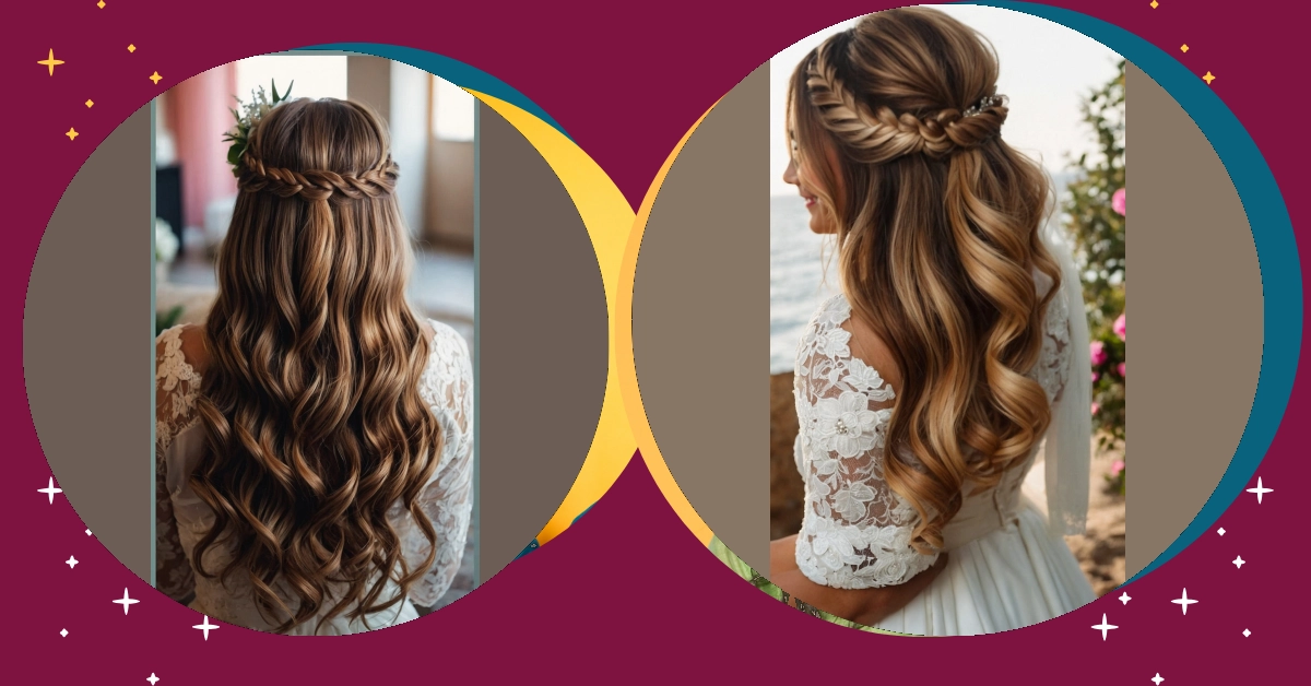 Finding the perfect hairstyle for your wedding day can be as thrilling as finding the dress itself, especially when you consider the versatile charm of a half up, half down look. This style beautifully frames the face while allowing your locks to cascade gracefully down your back, creating an ethereal aura on your special day. Whether adorned with delicate flowers, elegant hairpins, or sparkling jewels, these hairstyles can reflect your personality and wedding theme, from rustic elegance to modern chic. You can play with the texture too — think soft curls for a romantic vibe or sleek and straight for a more polished appearance.