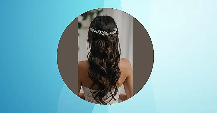 The woman in the picture has a super pretty bridal hairstyle! She’s got long, flowing waves that look super soft and romantic. And the braid tucked into her hair is a really cute touch. It’s like a little crown of braids. It’s the perfect look for someone who wants to look elegant and beautiful, but not super over-the-top. Plus, it’s not super complicated, so it’s easier to style than a big, fancy updo!