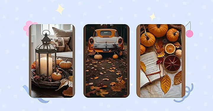 This picture is like a fall festival in a single frame! It’s got pumpkins of all shapes and sizes, cozy wooden furniture, and a bunch of autumn leaves that look like they just fell from the trees. It’s the perfect scene for a chilly fall day, don’t you think? Maybe you could grab a pumpkin spice latte and cozy up in a blanket while you admire all the beautiful colors.