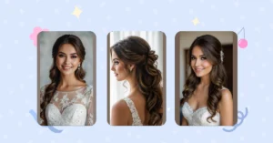 First up, let’s pamper those lovely long tresses! With long hair, the options are practically limitless. You can keep things simple with a classic side part, letting the hair flow freely or perhaps go for a bohemian half up half down look for that effortlessly chic vibe. There’s something timeless about a beautiful updo too—perfect for making you feel like royalty while adding an air of elegance on the bride’s big day.
