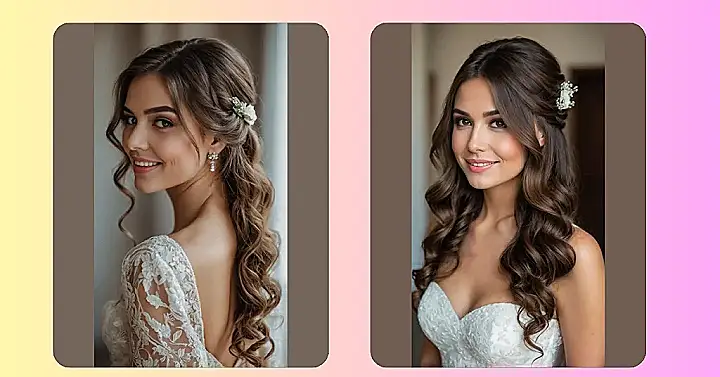 Let’s start with hair length! For those lucky ladies with long locks, the loose curl look can elevate your bridal attire in a matter of seconds. Opting for a half-up style gives you just the right amount of sophistication, making you look effortlessly put together. And medium-length hair, don’t be shy—getting those lovely loose waves beautifully framed around your face creates a fabulous contrast that’s to die for.