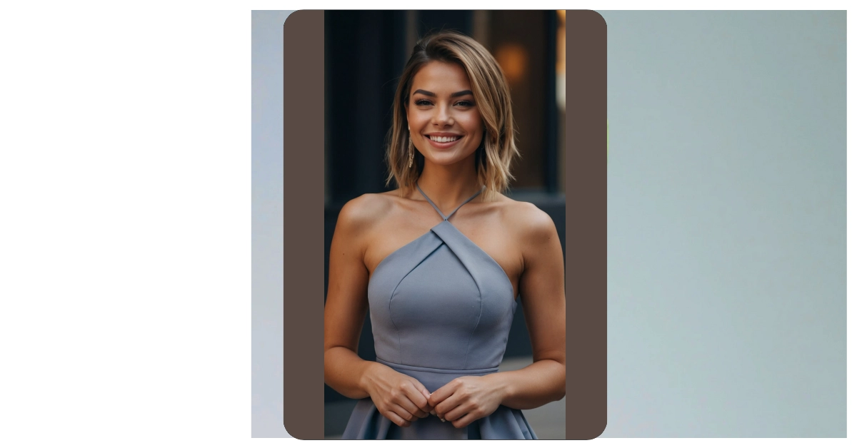 This girl totally rocks the mid-length bob! It’s like she just walked out of a magazine, with her perfect hair and that stunning blue dress. It’s a classic look that always makes a statement, kind of like when you ace that big test and everyone is like, “Whoa, you’re a rockstar!” Plus, that smile is contagious! She looks like she’s about to conquer the world, or at least grab a delicious ice cream cone.
