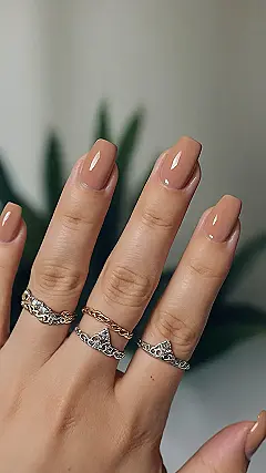 Look at those nails! They’re totally *rocking* the fall vibes with their chic nude color and super cute crown rings. Imagine walking down the hallways at school with these bad boys, feeling like royalty! No pumpkin spice latte required, these nails are already screaming fall fashion. üòâ