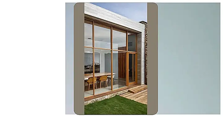 This isn’t your grandma’s renovated house! Forget wallpaper and floral patterns – this place is straight out of a sci-fi movie (but in a really good way!). Imagine walking up those sleek steps, feeling like you’re entering a super-modern spaceship instead of just a home. The mix of cool grey stone and warm brown wood is seriously stylish, and those huge windows make the whole thing look bright and airy – perfect for showing off your awesome new robot vacuum cleaner!