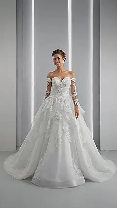 Imagine twirling around in this on your big day! The puffy skirt is basically begging for you to do a spin, and those sleeves add a touch of elegance that says, “Yeah, I’m getting married, but I’m also totally stylish.” It’s the perfect mix of classic and modern, so you can rock it whether you’re getting married in a castle or on a beach. Plus, who doesn’t love a dress that makes you feel like you’re floating on a cloud?