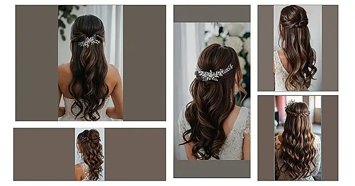 Finding the perfect hairstyle for your wedding day can be as thrilling as finding the dress itself, especially when you consider the versatile charm of a half up, half down look. This style beautifully frames the face while allowing your locks to cascade gracefully down your back, creating an ethereal aura on your special day. Whether adorned with delicate flowers, elegant hairpins, or sparkling jewels, these hairstyles can reflect your personality and wedding theme, from rustic elegance to modern chic. You can play with the texture too — think soft curls for a romantic vibe or sleek and straight for a more polished appearance.