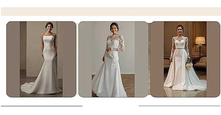 There’s something magical about the touch and drape of a dress made from soft silk, completing your bridal look with an ethereal vibe. The beauty of exploring simple off-white styles is that they often allow for creative freedom elsewhere—like how you style your hair or what accessories you choose! With each option, you’ll have the chance to let your personality shine bright like a diamond!