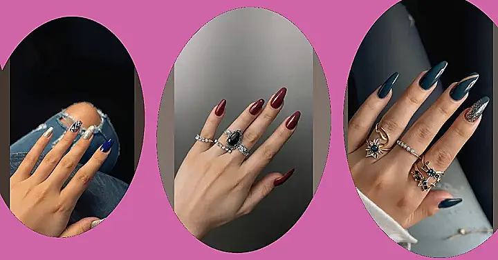And let’s not forget those rings! They add a touch of sophistication and make these nails even more stylish. Plus, those blue stones are like little tiny stars, adding a touch of magic to the whole look. This is a nail design that’s perfect for any fall occasion, from a casual coffee date to a fancy dinner.