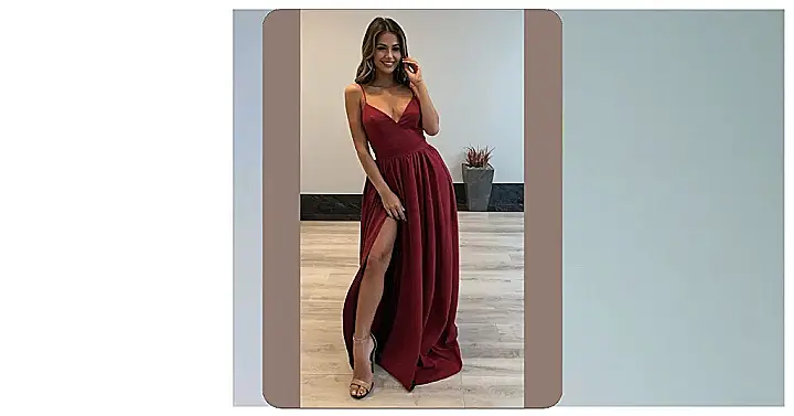 This dress is perfect for making a grand entrance at your homecoming! It’s got that long, flowing skirt that makes you feel like a princess, and the deep red color is super flattering. Plus, that high slit lets you show off your amazing shoes! Just imagine the compliments you’ll get when you walk into the dance with this dress – you’ll be the talk of the night!