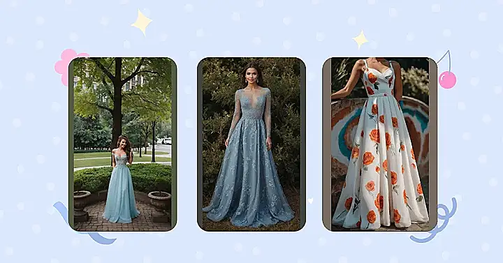 Wearing a long gown like this flowy blue one feels like you’ve unlocked a new level of fancy. You could glide down the street feeling like royalty, or at least like you’re definitely too important to do chores. Just be careful not to get your skirt caught in a revolving door or mistake the train for a very large, very fluffy pet. It’s the perfect look for when you want to appear effortlessly glamorous, even if you’re just trying to remember where you left your phone.
