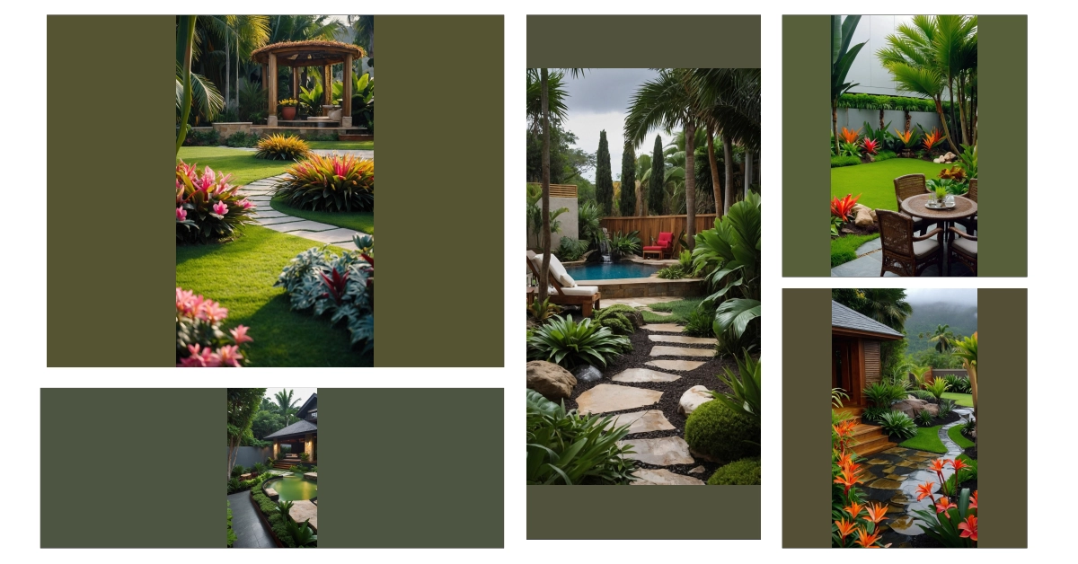 Wandering along the meandering paths lined with swaying palm trees and lush ferns, you discover hidden treasures at every turn. A tranquil pond reflects the clear blue sky above, its surface alive with the graceful movements of koi fish and the occasional water lily floating serenely. Take a seat on the intricately carved wooden bench nestled under the canopy of a majestic banana tree, and let the warm sunlight kiss your skin as you immerse yourself in the sheer beauty and tranquility of this tropical paradise brought to life in your very own backyard.
