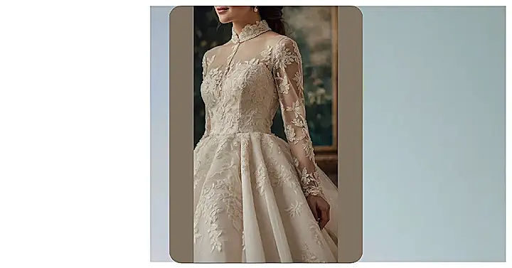 Think of this dress as the fashion equivalent of a hug. The intricate lace details are like little embroidered wildflowers all over, and the flowy skirt is perfect for twirling on the dance floor (or just dramatically posing for photos with your squad). Plus, the long sleeves mean you can stay warm even if your wedding is outside. It’s like the designer was thinking, “Let’s make a dress that’s beautiful and practical!”