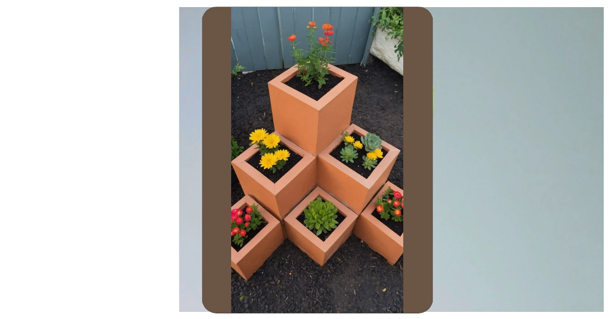 These aren’t just any flowerpots; this looks like the secret meeting place for the most organized plants in the neighborhood! Someone clearly had a blast with some serious garden crafts, stacking up these neat terracotta-colored squares like a plant-powered pyramid scheme. It’s almost like each little flower and succulent has its own personal VIP box, complete with prime sun exposure and no messy neighbors hogging all the space. You can practically hear them whispering, “Look at us, so perfectly aligned and thriving!”