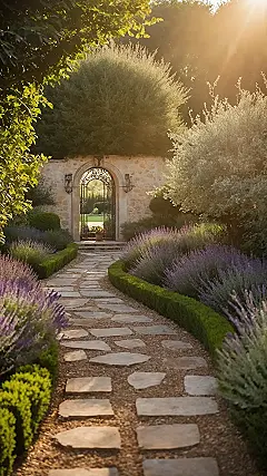 Stepping into this French country garden feels like finding a secret level in a video game, but instead of monsters, you get a path that practically whispers, “Adventure this way!” All those leafy green bushes and hints of purple flowers are just showing off, creating a winding wonderland. You almost expect a friendly gnome to pop out and offer directions, or maybe a tiny French snail slowly making its way across those cool stone pavers, probably on its way to a very important, slow-paced meeting. It’s the perfect place to forget about your phone for a bit and just soak up all the amazing greenery.
