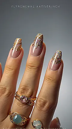 Summer’s almost here, and these nails are 100% ready to soak up the sun! Check out this gorgeous design. It’s got that perfect mix of summer pink and reddish tones blending like a dreamy popsicle that somehow got tangled with fancy gold lace. And the gold stuff? It looks like melted sunshine dripping down. These nails are practically begging for beach days and showing off whenever you reach for that cold drink.