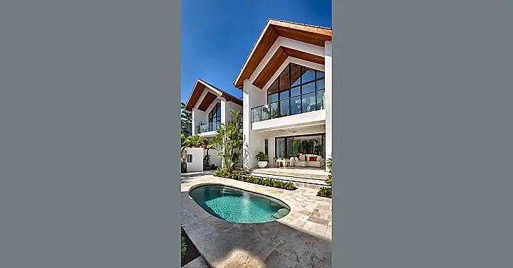 And let’s talk about that pool, because seriously, is there anything better than a sparkling blue escape right outside your door? Those two lounge chairs are basically waving you over, promising a day of zero thinking and maximum chill. You could easily spend hours pretending you’re a famous explorer who just discovered paradise, all while working on your tan (or, let’s be real, figuring out your next TikTok dance). This house is the kind of place where even your phone would probably kick back, grab a tiny umbrella drink, and just soak in the epic tropical vibes.