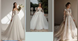 Let’s not sleep on the details, either. Whether you’re swooning over a romantic long sleeve or favoring the flirty vibes of a short style, your blush wedding dress will make a statement. The key is to find a design that feels uniquely you. Are you feeling adventurous? Dive headfirst into a fitted mermaid gown that hugs you in all the right places, or keep it breezy with a flowy design that dances as you walk.