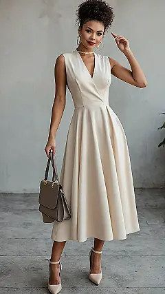 Finding the ultimate wedding guest dress feels like a secret mission, right? You want to look amazing, but definitely not so amazing that anyone confuses you with the actual bride – especially if your outfit is this lovely light cream! This sleeveless stunner with its flowy skirt and cool V-neck totally nails that ‘I’m here for the party and the free food’ vibe, making you look effortlessly chic without trying too hard. Plus, think of all the fantastic twirling opportunities once the music really kicks in!