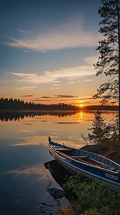 Check out this scene! It’s like this boat in Finland decided it was time for a serious nap by the lake. The water is so calm, it’s basically a giant mirror showing off the sky’s fancy outfit for the evening. You can practically hear the quiet, maybe just a tiny fish doing a little flip somewhere. It’s the kind of place where stress just evaporates like mist in the morning sun. Seriously, this is peak “relaxing by the water” vibes, Finnish style.
