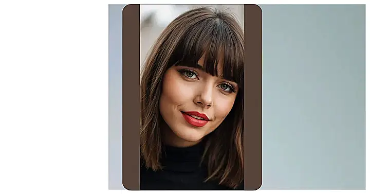 That amazing feeling when your hair just *gets* you? This awesome person in the picture totally nails it with her fantastic bangs haircut! Her rich brown hair flows perfectly, and those bangs frame her face like she just stepped out of a magazine. It’s like her fringe is saying, “Hello, world, I’m ready for my close-up!” We’ve all had those mornings where our hair has other plans, but she makes looking this effortlessly cool seem like a breeze. Plus, a great set of bangs can add a little bit of mystery or even hide that one eyebrow that just won’t cooperate.