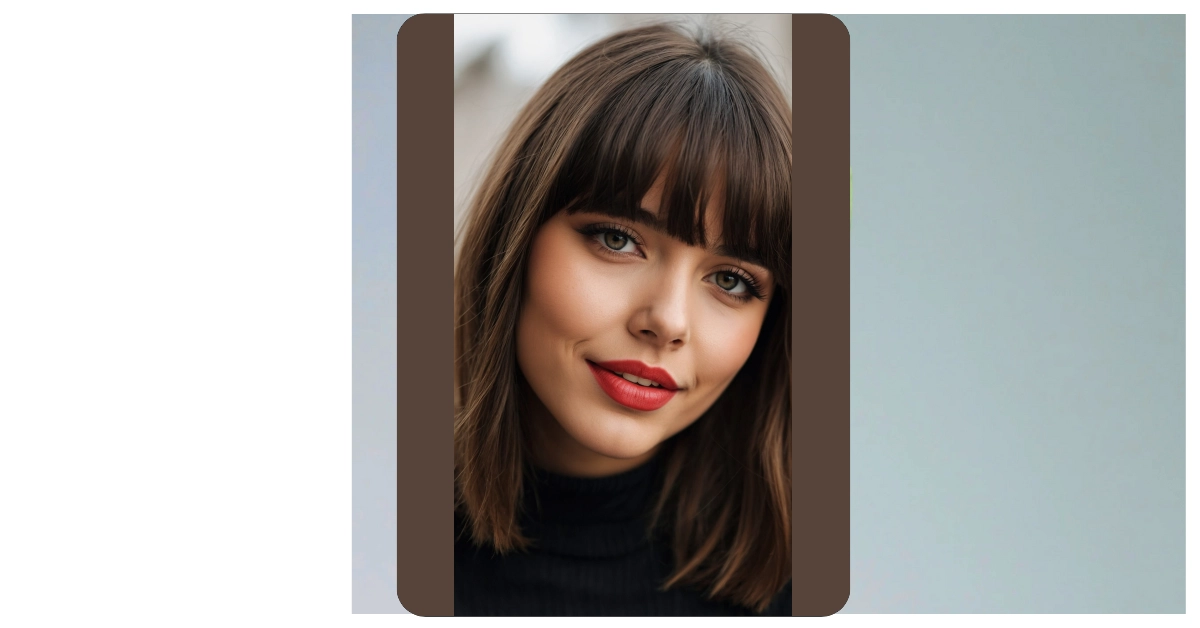 Looking at this cheerful face, you can’t help but notice those perfectly cut bangs! They’re doing some serious work framing her smile and making her eyes sparkle. Getting bangs is kind of like getting a secret superpower for your face; one minute you’re just you, the next you’ve got this cool, fresh vibe. It’s like your forehead suddenly decided it needed a stylish curtain call, and honestly, who are we to argue? Plus, if you’ve ever had a little DIY haircut moment with kitchen scissors in front of the bathroom mirror (we’ve all been there, don’t lie), you know achieving this level of fringe perfection is truly an art.