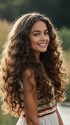 Wow, check out those curls! This girl’s hair is like a luscious chocolate waterfall, seriously. It’s so long and bouncy, it almost looks like she’s wearing a wig made of delicious, perfectly-coiled noodles. The picture shows off a super cute and simple style—all you need are some curls and confidence! It proves you don’t need crazy hairspray or complicated braids to rock amazing curly hair.