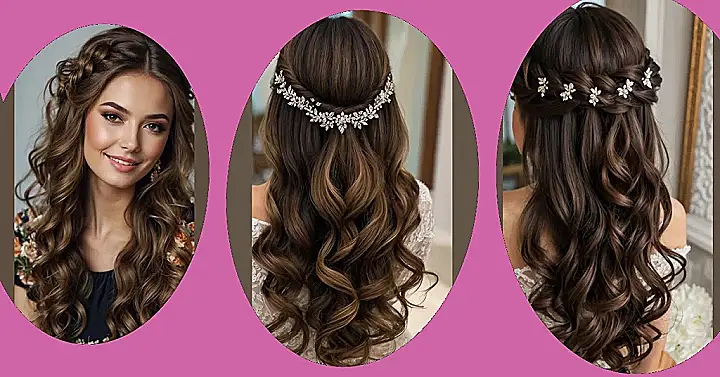 Picking out hairstyles for a wedding isn’t just about looking pretty; it’s about finding something that can handle the chaos! Will it survive the happy tears? The enthusiastic dancing? The moment someone unexpectedly throws rice? This half-up style with those gorgeous curls and that sparkling accessory looks like it’s up for the challenge. It’s the kind of hair that says, “Yes, I’m here for the wedding, and yes, my hair is looking fabulous and hopefully won’t end up in my soup!”