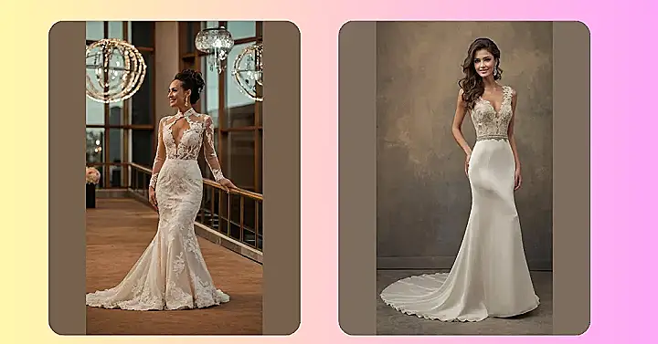 With its delicate lace detailing and figure-flattering mermaid silhouette, this dress is pure perfection. It’s the kind of dress that makes you feel confident, elegant, and ready to conquer the world, or at least the dance floor at your wedding reception. It’s got that “new bridal dress designs” vibe completely nailed, combining classic elegance with a modern twist. Who needs a glass slipper when you’ve got something this amazing?