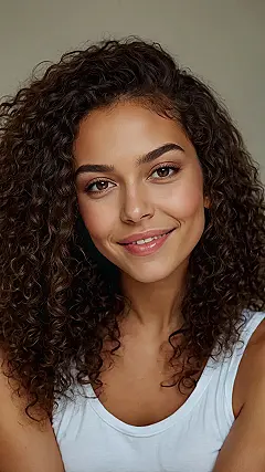 Looking at this picture, you can tell this woman’s gorgeous curly hair is practically sparkling with personality, just like her smile! Those lively ringlets aren’t just strands of hair; they’re like a bunch of tiny springs, ready to bounce into any adventure. Having a head full of curls means your hair often has a mind of its own, but in the best possible way – adding tons of character, volume, and that undeniable ‘wow’ factor that makes every day a good hair day, even when it’s totally wild!