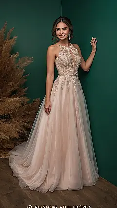 This engagement dress is like a fairytale come to life! Imagine yourself twirling at your engagement party, feeling like a total princess in this gorgeous gown. It’s covered in sparkly details – think delicate flowers and shimmering beads, all arranged so perfectly it’s like a masterpiece you could practically wear to a royal ball (or, you know, your engagement party!). You’ll definitely be the belle of the ball in this stunning, dreamy creation.