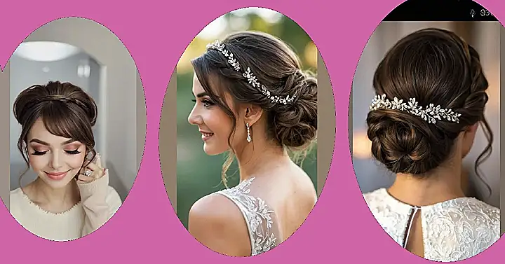 Wow, check out this gorgeous hairstyle! It’s like something straight out of a fairytale, and totally on point for what’s trending in bridal hairstyles for 2025. Those loose curls are super romantic, and that sparkly hairpiece? It’s like a little crown for your hair, but way cooler than any grandma crown you’ve ever seen. Seriously, this look is so pretty, you’ll want to wear it even if you’re not getting married (and maybe even if you are already married…just saying!).