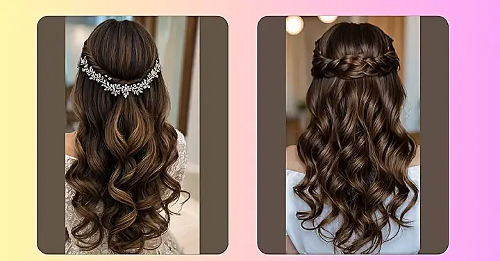 Picking out hairstyles for a wedding isn’t just about looking pretty; it’s about finding something that can handle the chaos! Will it survive the happy tears? The enthusiastic dancing? The moment someone unexpectedly throws rice? This half-up style with those gorgeous curls and that sparkling accessory looks like it’s up for the challenge. It’s the kind of hair that says, “Yes, I’m here for the wedding, and yes, my hair is looking fabulous and hopefully won’t end up in my soup!”