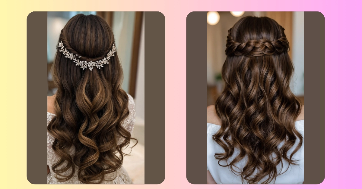 Picking out hairstyles for a wedding isn’t just about looking pretty; it’s about finding something that can handle the chaos! Will it survive the happy tears? The enthusiastic dancing? The moment someone unexpectedly throws rice? This half-up style with those gorgeous curls and that sparkling accessory looks like it’s up for the challenge. It’s the kind of hair that says, “Yes, I’m here for the wedding, and yes, my hair is looking fabulous and hopefully won’t end up in my soup!”