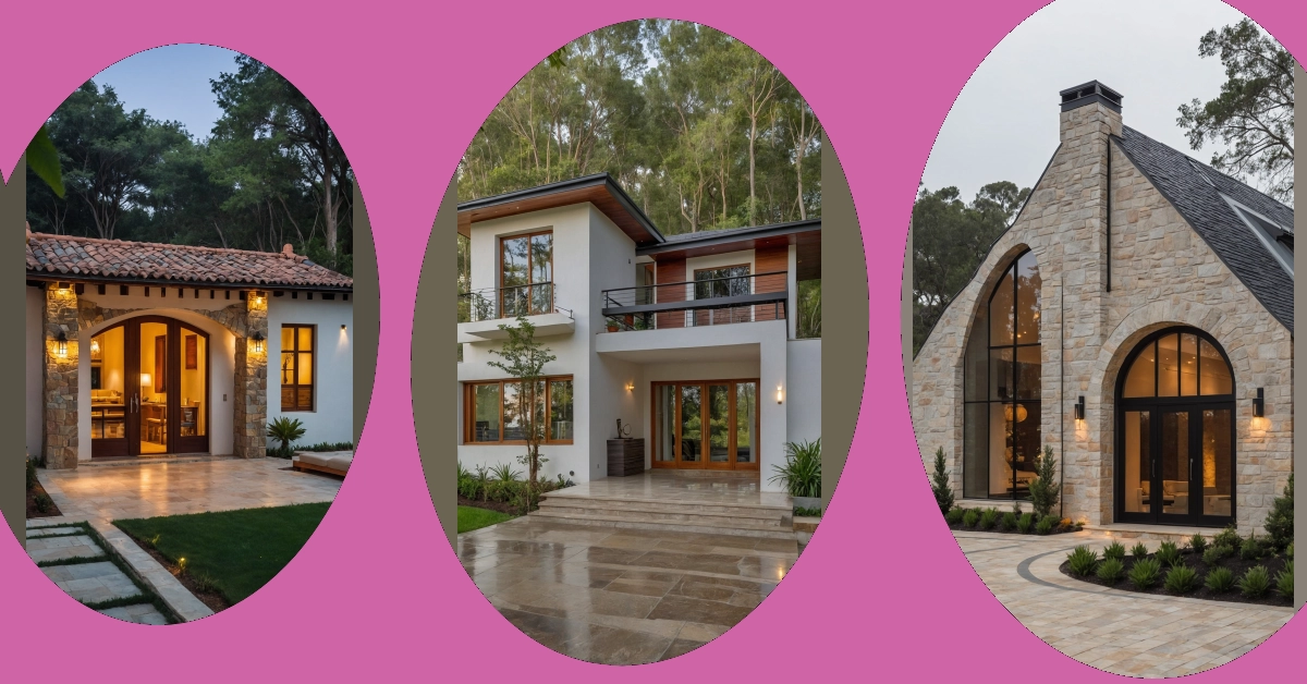You know those houses that look like they belong in a movie, not just on your street? This one is definitely one of *those*. With its fancy stone archway that practically screams ‘welcome to my castle’ (minus the dragons, probably), and those huge, dark-framed windows, this house totally nails the ‘unique house design’ brief. You can almost picture yourself waving from one of those cute little balconies, pretending to be royalty, or at least someone who gets to avoid chores by just looking important. It’s got more personality than a TikTok influencer!